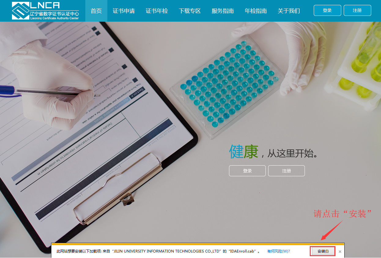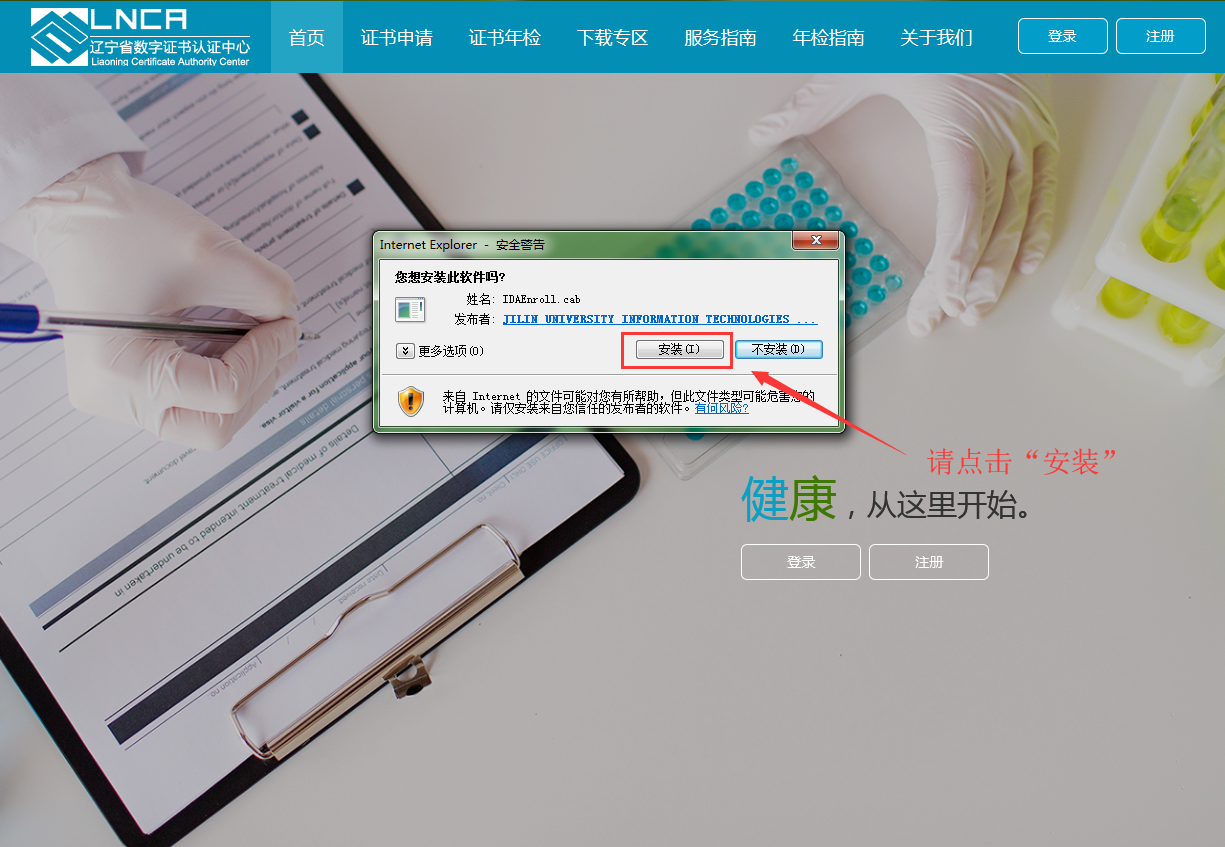 请点击“安装”,进行安装IDAEnroll.cab
