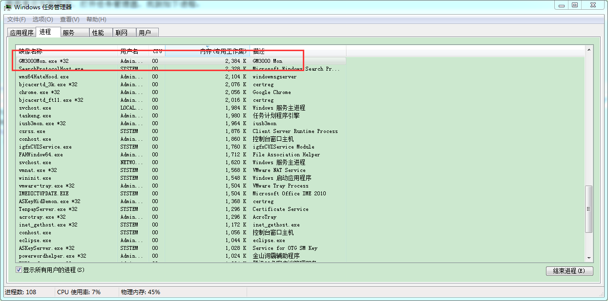 如果退出北京控件程序,依然读取不到证书, 需要重启龙脉驱动,打开任务管理器,找到如下进程: