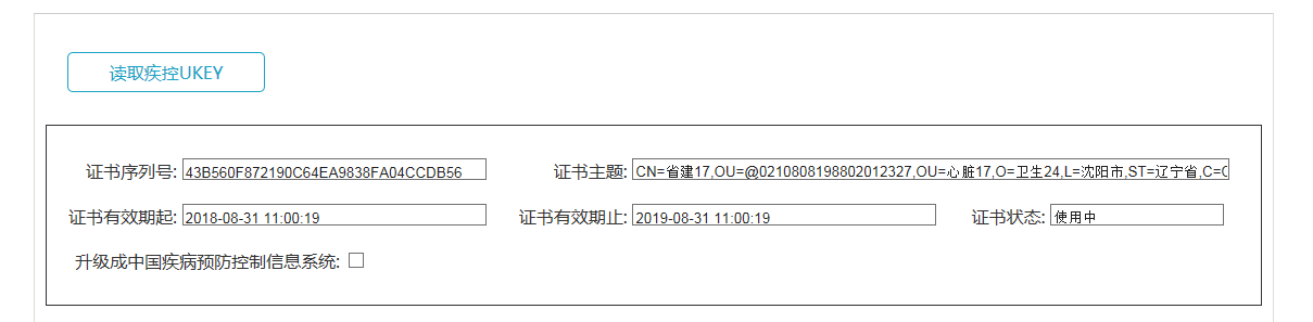 点击“读取疾控UKEY”,会弹出证书选择对话框,如下图: